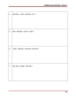 Soalan Matematik Tahun 5 Operasi Bahagia